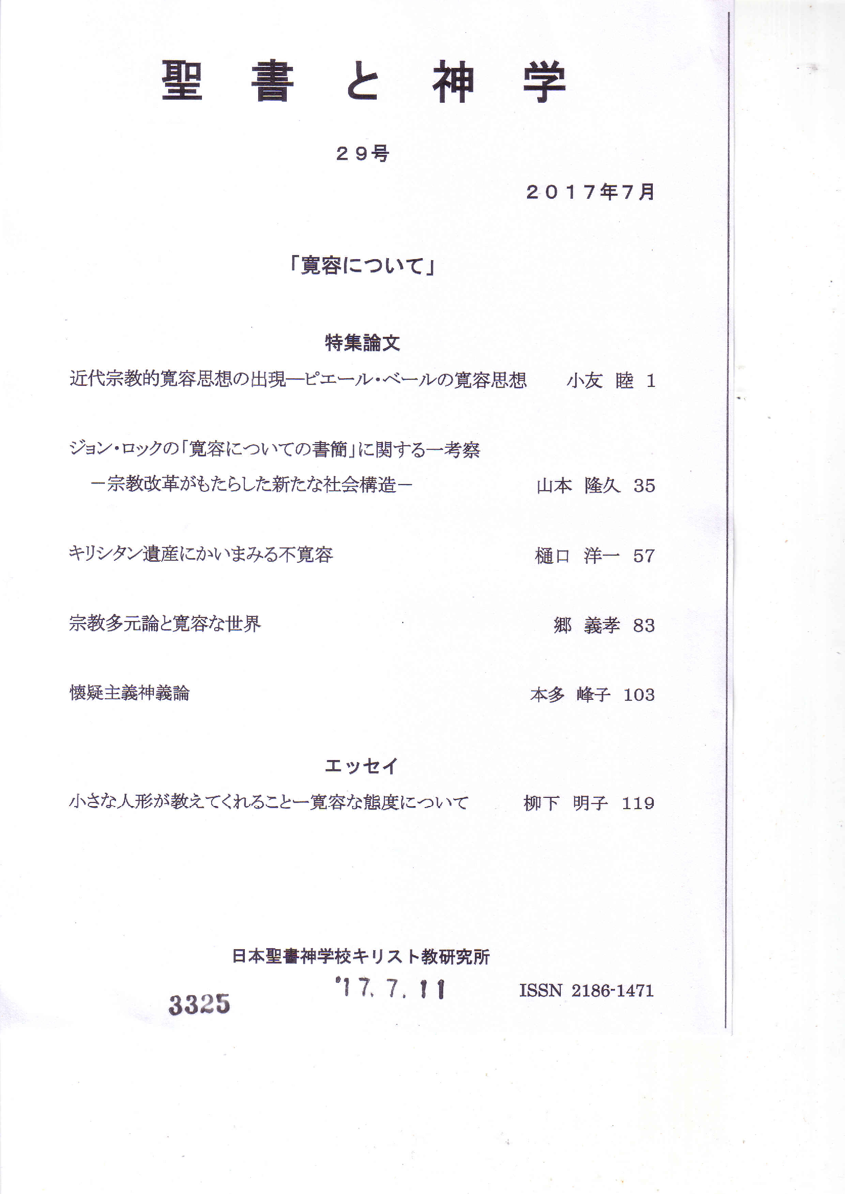 聖書と神学 29号